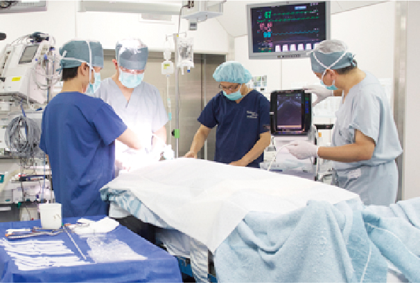 当院外傷センターでは、損傷部位や損傷臓器によって外科系各科のチームワークで集中的に治療を行っています。また、質の高い社会復帰を目指し、早期から多職種(各医師、看護師、PT、OT、薬剤師、管理栄養士、放射線技師、臨床検査技師、ソーシャルワーカーなど)が連携して治療に当たっています。