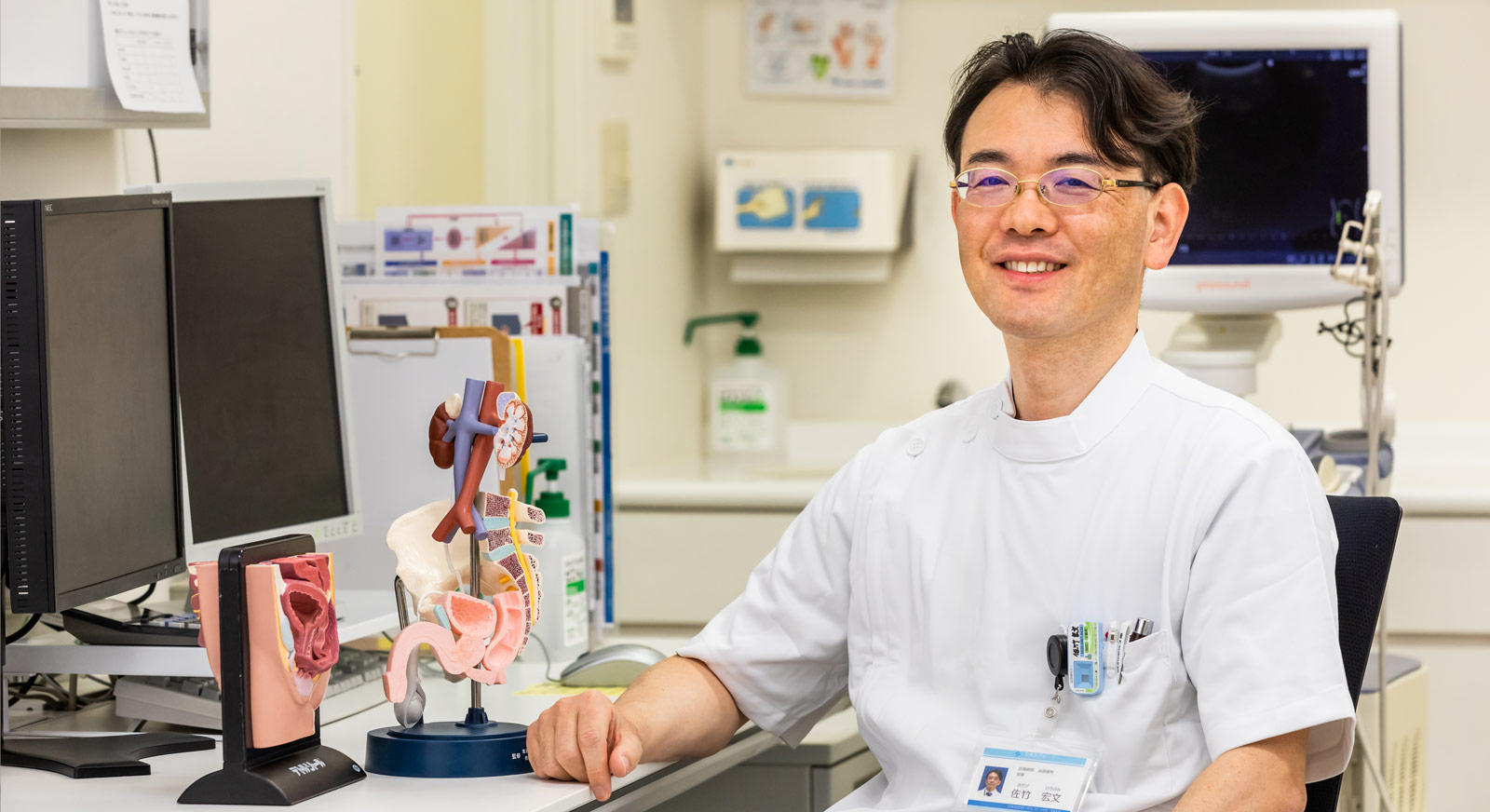 良性から悪性まで泌尿器科全般の疾患に対応できます。特に腎癌、膀胱癌、前立腺癌、尿膜管遺残症、腎盂尿管移行部狭窄症、精索静脈瘤に対する腹腔鏡手術を得意としています。