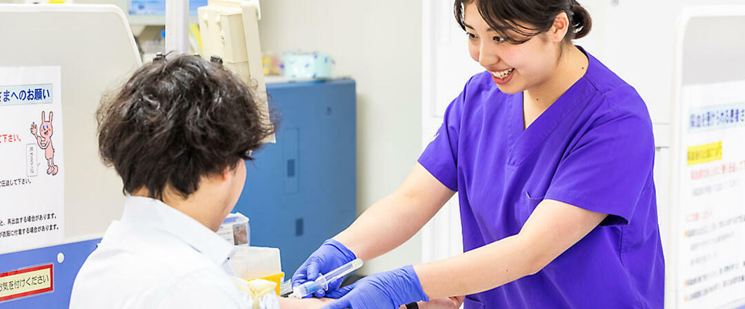 中央採血室では各科診療科から依頼される外来患者さんの血液検査のための採血を行います。