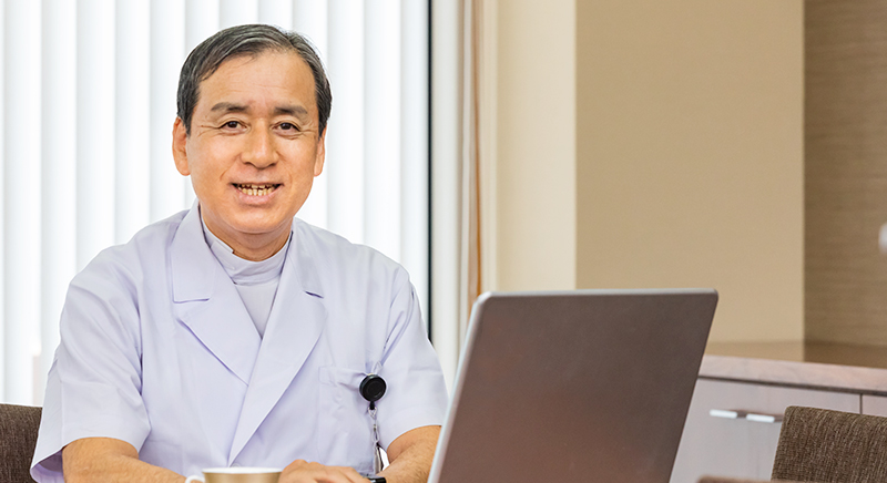 当院呼吸器外科はこれまで常勤医がいませんでしたが、2020年4月から前岡山赤十字病院呼吸器外科部長の森山重治医師が常勤医師として着任しました。対象疾患は肺癌を中心に、肺・縦隔の良性・悪性腫瘍、自然気胸、手掌多汗症など、呼吸器外科疾患全般を扱っています。前任の岡山赤十字病院では1995年から国内でも一早く胸腔鏡手術を開始し、2500例を超える胸腔鏡下手術を施行してきました。