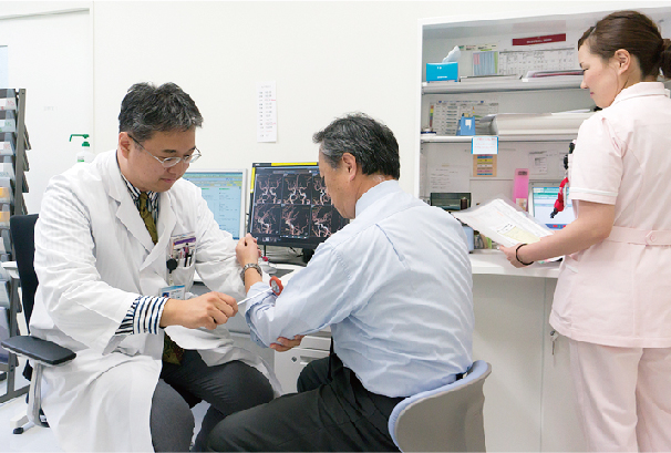 脳神経内科と脳神経外科の密接な連携のもと、治療方針が検討されます。くも膜下出血や脳出血、一部の脳梗塞では、外科治療が必要になります。クリッピング術、コイル塞栓術、頸動脈内膜剥離術、頸動脈ステント留置術、血管内再開通療法、血腫除去術等を行っています。