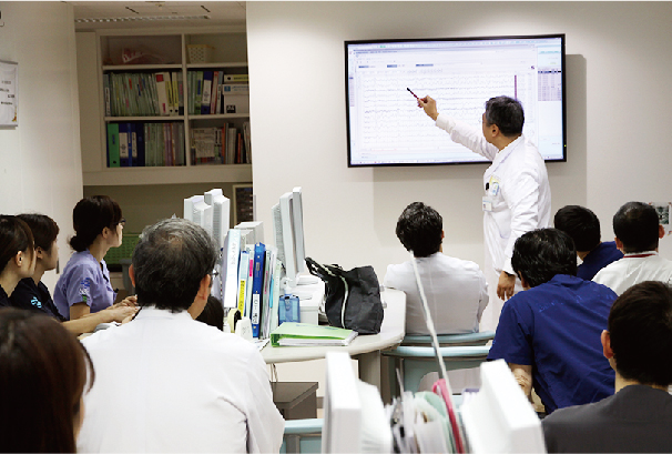 脳卒中専門の病棟(SCU)にて、脳神経内科医、脳神経外科医、看護師、リハビリスタッフ、管理栄養士、薬剤師、歯科衛生士ほか、多職種からなる専門チームによる治療を早期から行います。さらに、近森リハビリテーション病院との円滑な連携により、回復期リハビリも継続して行うことができます。
