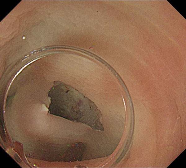 ESDの手法としては、浸水下ポケットクリエーション法を主体に行っています。脱気した状態で行うため、患者さんも楽に受けられ、筋層直上で安定して切除できるため、繊維化がある病変の切除も容易です。切除された標本の状態も良好で、正確な病理学的評価が可能です。