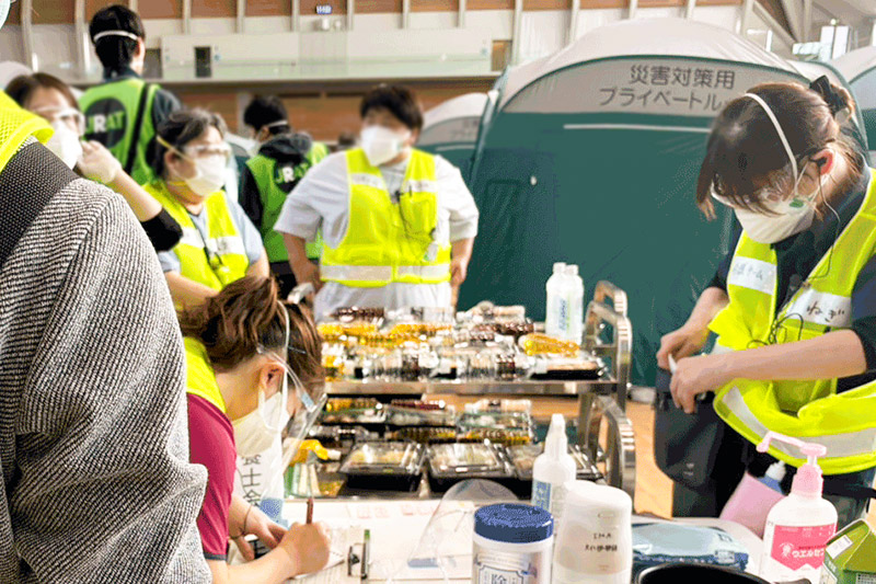 - 自宅の復旧や仮設住宅等への入居までの間、被災者の生活環境を確保するため、被災地の避難所等から被災地外の一時的な避難施設やホテル・旅館等の2次避難所への被災者の移動を支援。特に高齢者など配慮が必要な人たちを対象に、一時的な受け入れ先となっています。