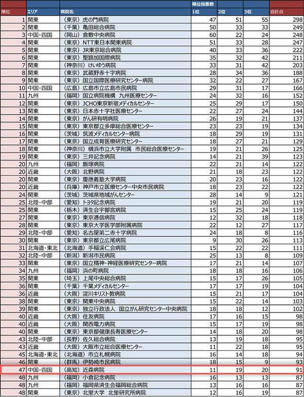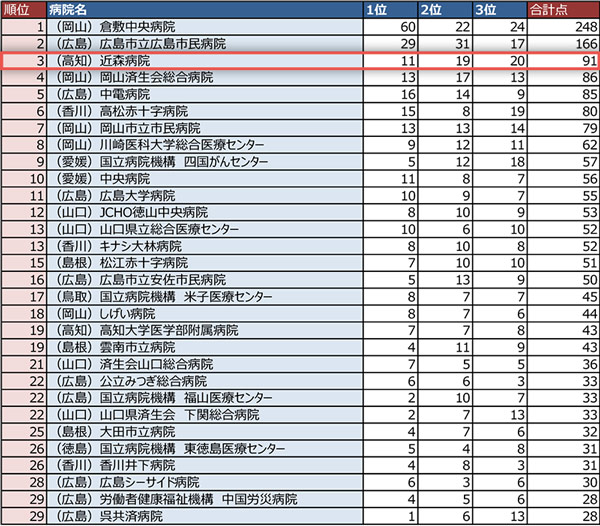 中国・四国エリアの働きたい病院ランキングTOP30