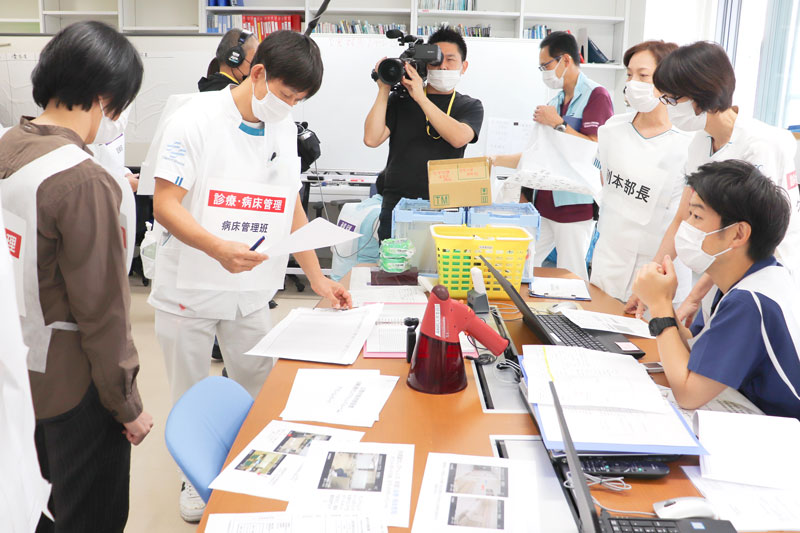当院の災害対応本部訓練や備蓄の状況、近森病院附属看護学校における災害対策の特別授業の様子も取材を受けました。