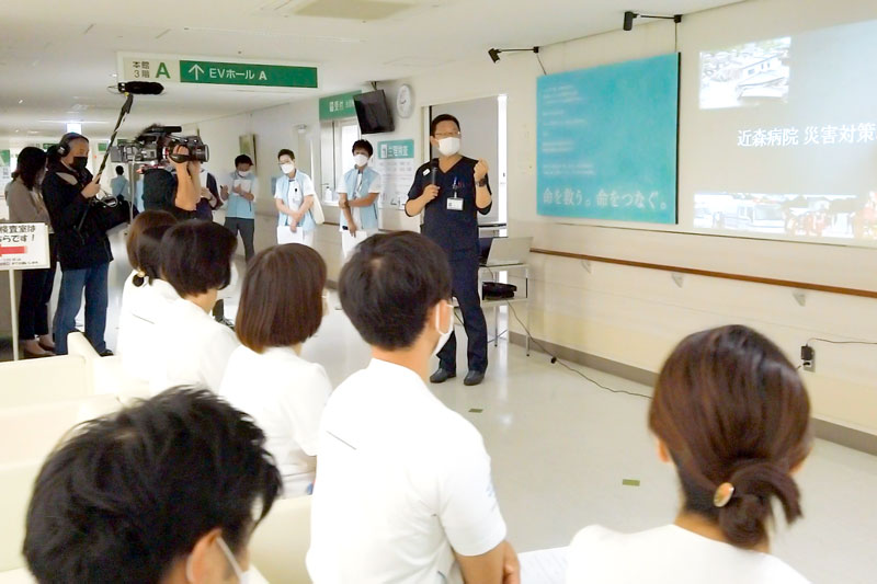 当院の災害対応本部訓練や備蓄の状況、近森病院附属看護学校における災害対策の特別授業の様子も取材を受けました。