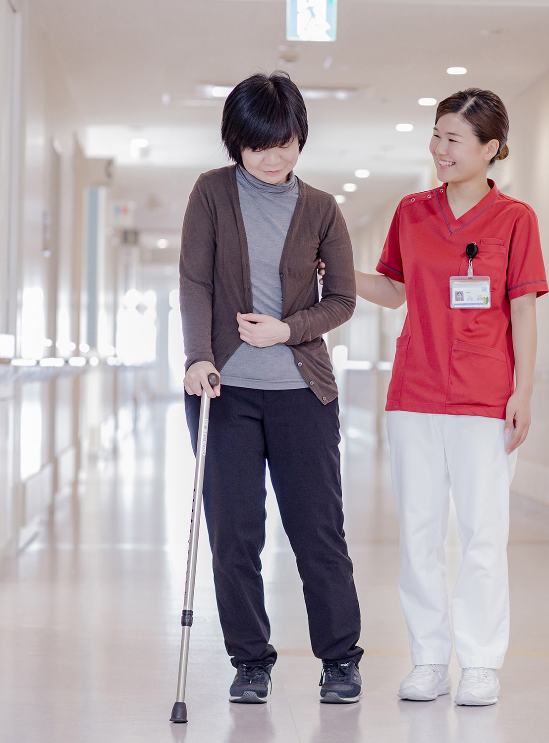 私たち近森リハビリテーション病院では、回復期リハビリテーション病院として、患者さんひとりひとりの機能・能力障害をできるだけ回復させ、残存機能を生かすように努めています。