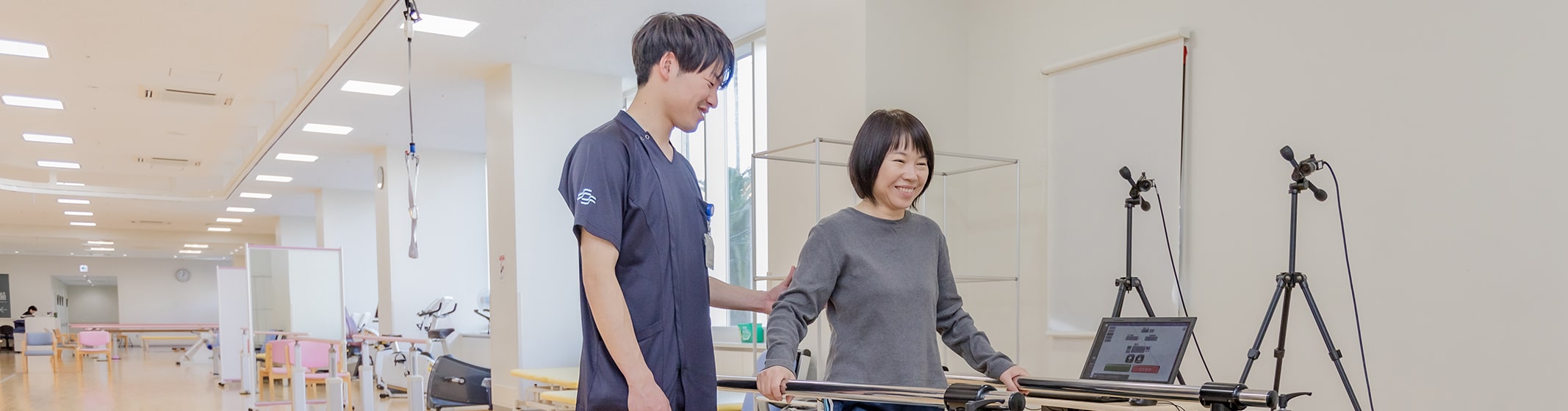 回復期リハビリテーション病棟の対象となる患者さんは様々な障害を持ち、多くの不安を抱えています。そんな患者さんの不安を少しでも軽減させ、可能な限り質の高い生活と在宅復帰を目指しリハビリテーションを進めることが、私たちの使命です。そのためには従来のリハビリテーションアプローチに加え先進的なアプローチを取り入れ、様々な機器の導入とスタッフの技術向上に努めています。